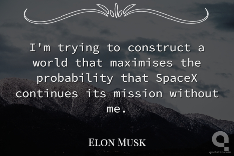 I'm trying to construct a world that maximises the probability that SpaceX continues its mission without me. Elon Musk