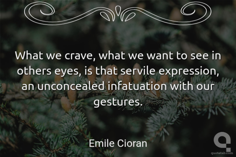 What we crave, what we want to see in others eyes, is that servile expression, an unconcealed infatuation with our gestures. Emile Cioran