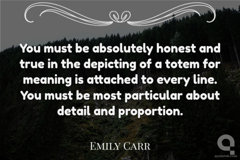 You must be absolutely honest and true in the depicting of a totem for meaning is attached to every line. You must be most particular about detail and proportion. Emily Carr