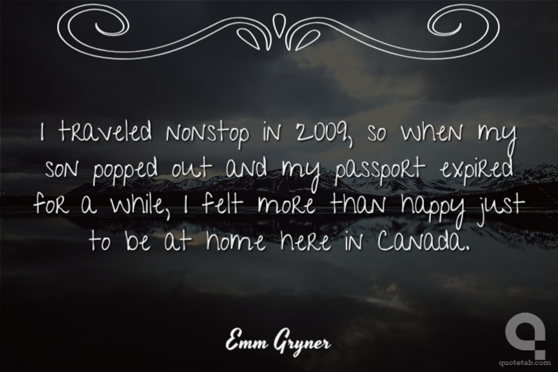 I traveled nonstop in 2009, so when my son popped out and my passport expired for a while, I felt more than happy just to be at home here in Canada. Emm Gryner
