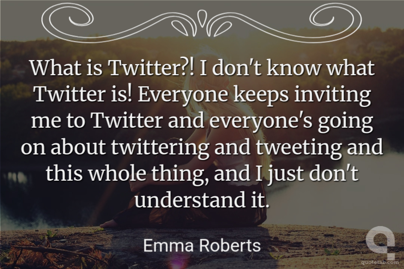 What is Twitter?! I don't know what Twitter is! Everyone keeps inviting me to Twitter and everyone's going on about twittering and tweeting and this whole thing, and I just don't understand it. Emma Roberts