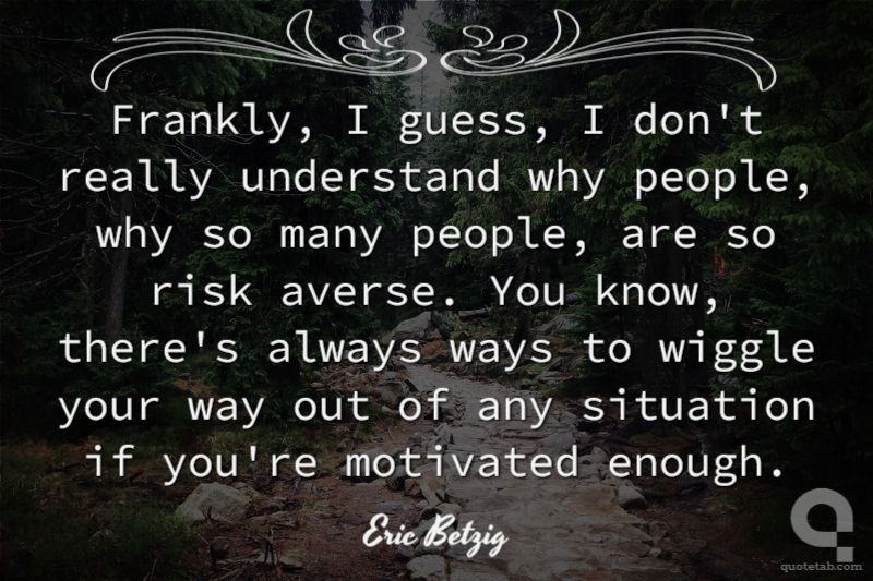 Frankly, I guess, I don't really understand why people, why so many people, are so risk averse. You know, there's always ways to wiggle your way out of any situation if you're motivated enough. Eric Betzig