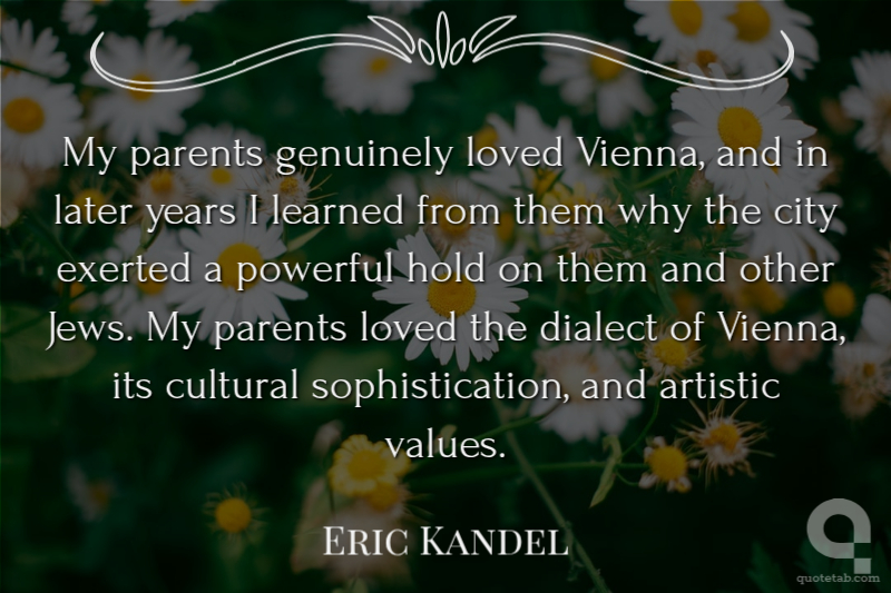 My parents genuinely loved Vienna, and in later years I learned from them why the city exerted a powerful hold on them and other Jews. My parents loved the dialect of Vienna, its cultural sophistication, and artistic values. Eric Kandel