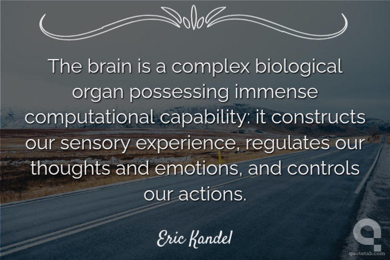 The brain is a complex biological organ possessing immense computational capability: it constructs our sensory experience, regulates our thoughts and emotions, and controls our actions. Eric Kandel