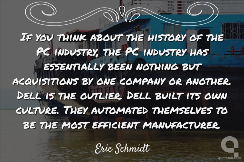 If you think about the history of the PC industry, the PC industry has essentially been nothing but acquisitions by one company or another. Dell is the outlier. Dell built its own culture. They automated themselves to be the most efficient manufacturer. Eric Schmidt