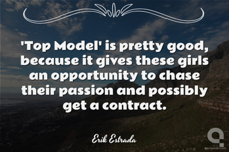'Top Model' is pretty good, because it gives these girls an opportunity to chase their passion and possibly get a contract. Erik Estrada
