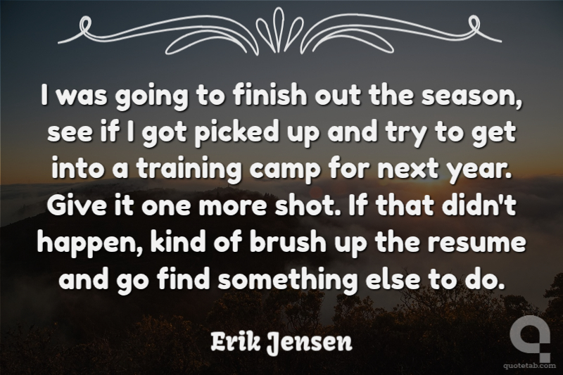 I was going to finish out the season, see if I got picked up and try to get into a training camp for next year. Give it one more shot. If that didn't happen, kind of brush up the resume and go find something else to do. Erik Jensen