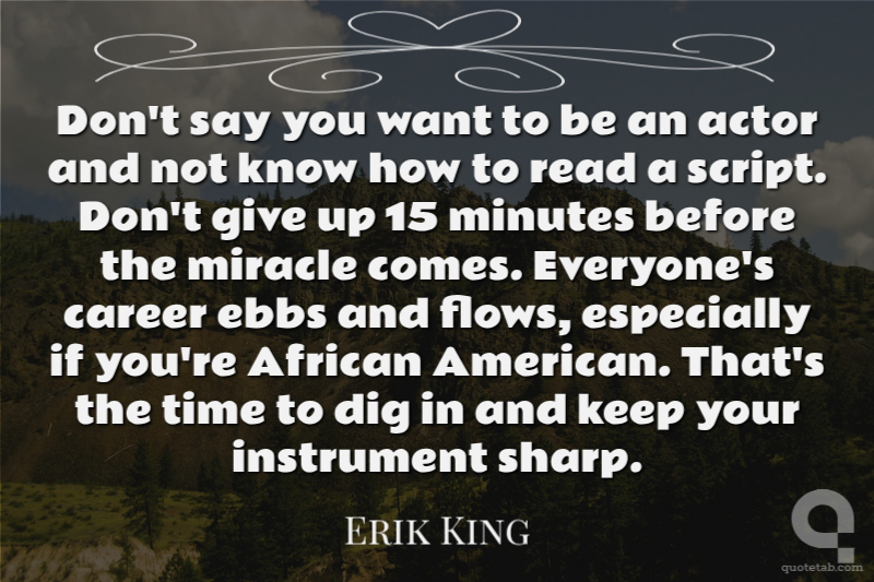 Don't say you want to be an actor and not know how to read a script. Don't give up 15 minutes before the miracle comes. Everyone's career ebbs and flows, especially if you're African American. That's the time to dig in and keep your instrument sharp. Erik King