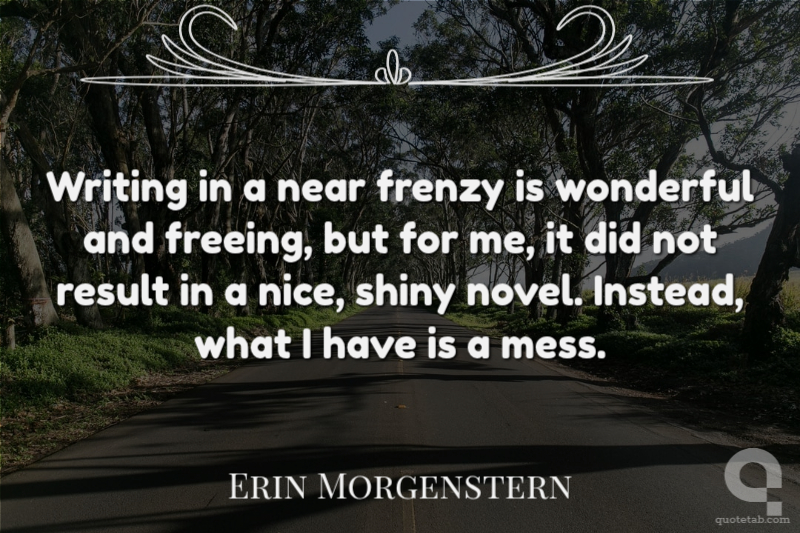 Writing in a near frenzy is wonderful and freeing, but for me, it did not result in a nice, shiny novel. Instead, what I have is a mess. Erin Morgenstern