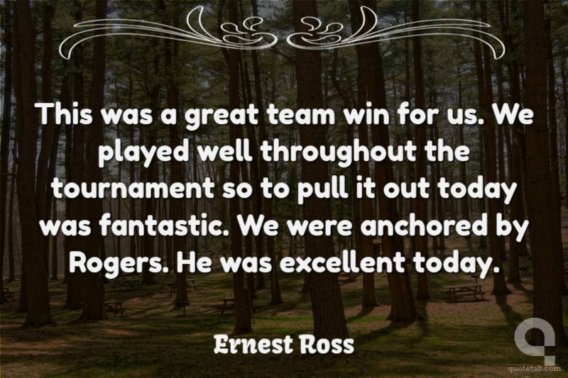 This was a great team win for us. We played well throughout the tournament so to pull it out today was fantastic. We were anchored by Rogers. He was excellent today. Ernest Ross