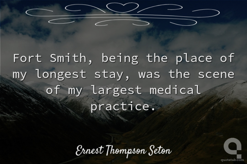Fort Smith, being the place of my longest stay, was the scene of my largest medical practice. Ernest Thompson Seton