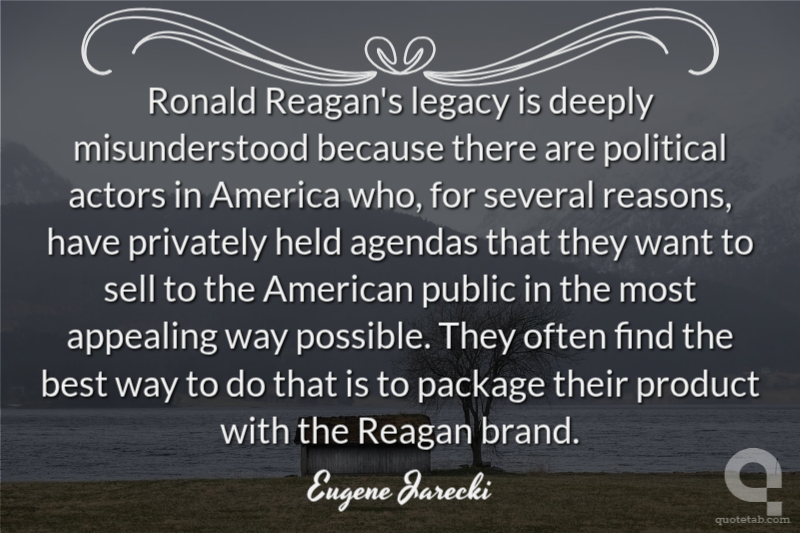 Ronald Reagan's legacy is deeply misunderstood because there are political actors in America who, for several reasons, have privately held agendas that they want to sell to the American public in the most appealing way possible. They often find the best way to do that is to package their product with the Reagan brand. Eugene Jarecki