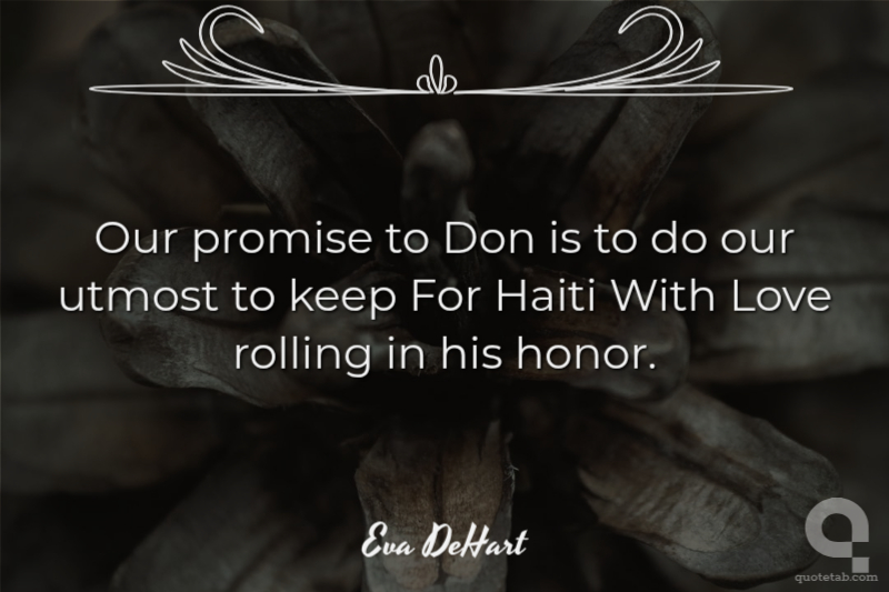 Our promise to Don is to do our utmost to keep For Haiti With Love rolling in his honor. Eva DeHart