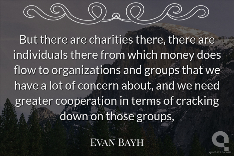 But there are charities there, there are individuals there from which money does flow to organizations and groups that we have a lot of concern about, and we need greater cooperation in terms of cracking down on those groups, Evan Bayh