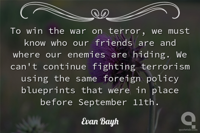 To win the war on terror, we must know who our friends are and where our enemies are hiding. We can't continue fighting terrorism using the same foreign policy blueprints that were in place before September 11th. Evan Bayh