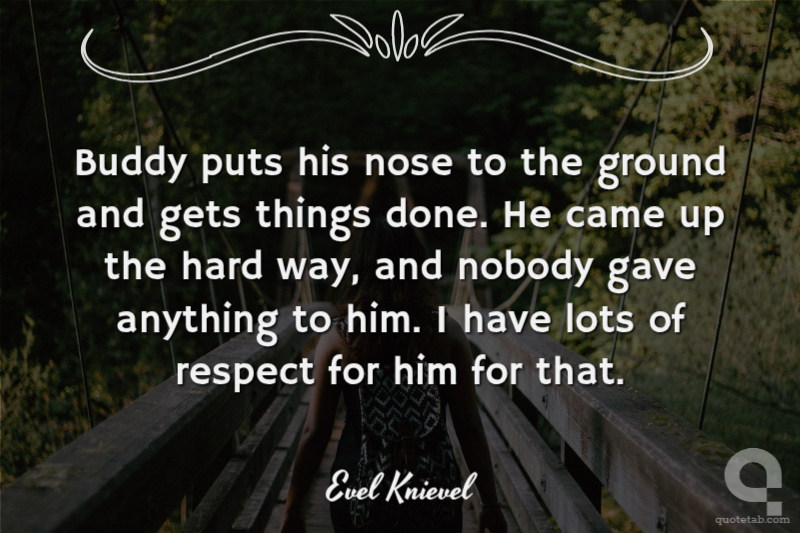Buddy puts his nose to the ground and gets things done. He came up the hard way, and nobody gave anything to him. I have lots of respect for him for that. Evel Knievel