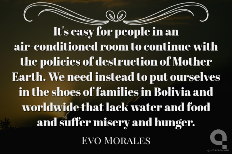 It's easy for people in an air-conditioned room to continue with the policies of destruction of Mother Earth. We need instead to put ourselves in the shoes of families in Bolivia and worldwide that lack water and food and suffer misery and hunger. Evo Morales