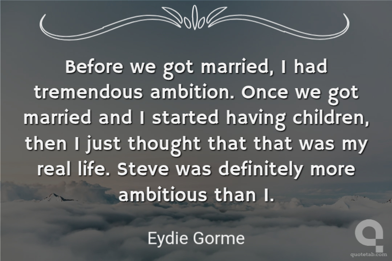 Before we got married, I had tremendous ambition. Once we got married and I started having children, then I just thought that that was my real life. Steve was definitely more ambitious than I. Eydie Gorme