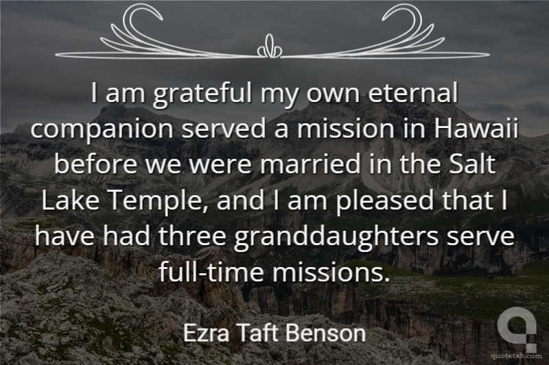 I am grateful my own eternal companion served a mission in Hawaii before we were married in the Salt Lake Temple, and I am pleased that I have had three granddaughters serve full-time missions. Ezra Taft Benson