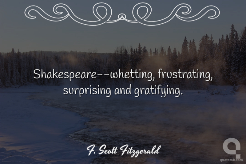 Shakespeare--whetting, frustrating, surprising and gratifying. F. Scott Fitzgerald