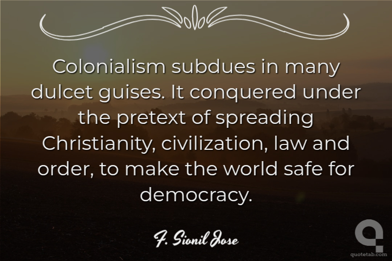 Colonialism subdues in many dulcet guises. It conquered under the pretext of spreading Christianity, civilization, law and order, to make the world safe for democracy. F. Sionil Jose