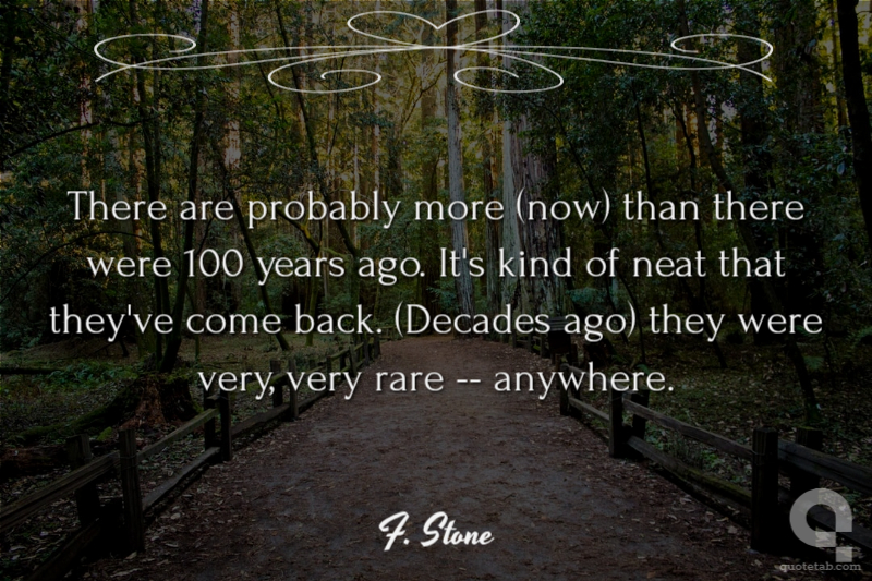 There are probably more (now) than there were 100 years ago. It's kind of neat that they've come back. (Decades ago) they were very, very rare -- anywhere. F. Stone
