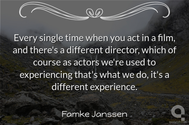 Every single time when you act in a film, and there's a different director, which of course as actors we're used to experiencing that's what we do, it's a different experience. Famke Janssen