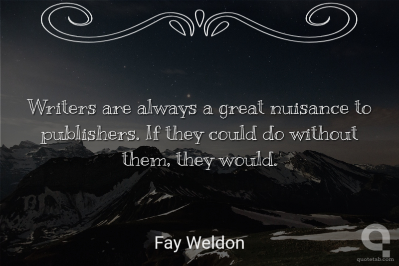 Writers are always a great nuisance to publishers. If they could do without them, they would. Fay Weldon