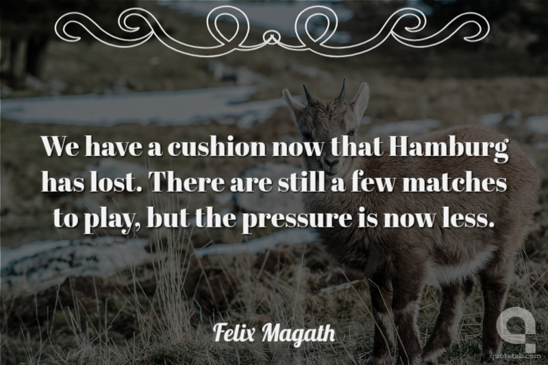 We have a cushion now that Hamburg has lost. There are still a few matches to play, but the pressure is now less. Felix Magath