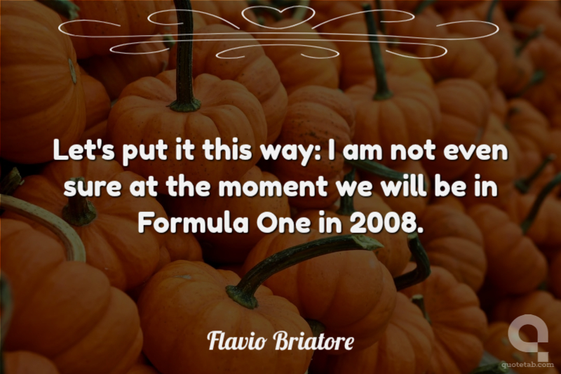 Let's put it this way: I am not even sure at the moment we will be in Formula One in 2008. Flavio Briatore