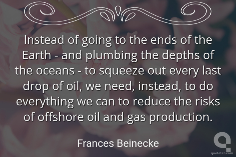 Instead of going to the ends of the Earth - and plumbing the depths of the oceans - to squeeze out every last drop of oil, we need, instead, to do everything we can to reduce the risks of offshore oil and gas production. Frances Beinecke