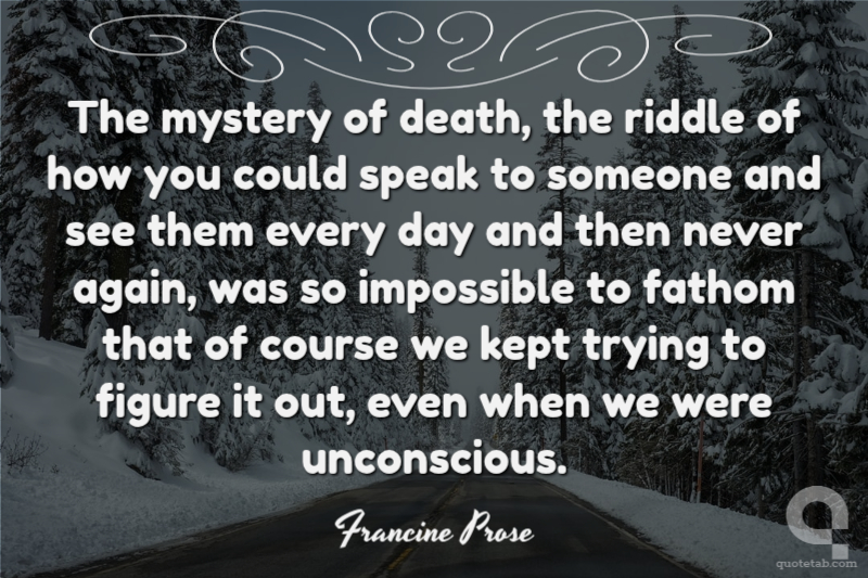 The mystery of death, the riddle of how you could speak to someone and see them every day and then never again, was so impossible to fathom that of course we kept trying to figure it out, even when we were unconscious. Francine Prose