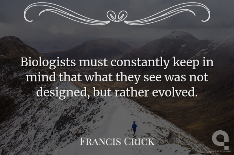 Biologists must constantly keep in mind that what they see was not designed, but rather evolved. Francis Crick