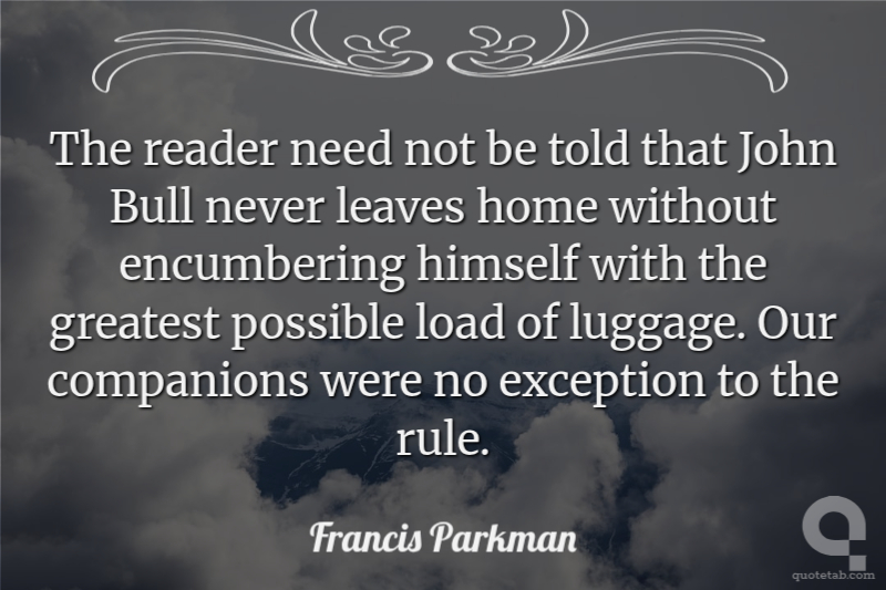 The reader need not be told that John Bull never leaves home without encumbering himself with the greatest possible load of luggage. Our companions were no exception to the rule. Francis Parkman