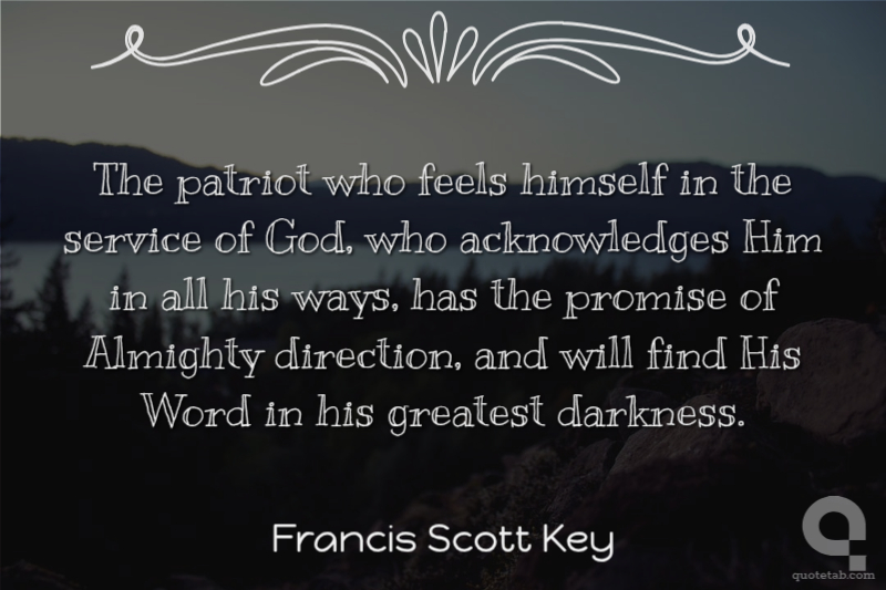 The patriot who feels himself in the service of God, who acknowledges Him in all his ways, has the promise of Almighty direction, and will find His Word in his greatest darkness. Francis Scott Key