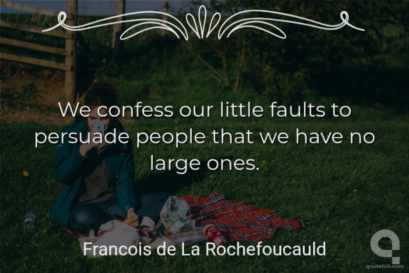 We confess our little faults to persuade people that we have no large ones. Francois de La Rochefoucauld