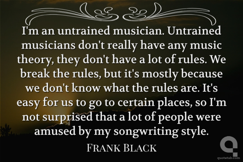 I'm an untrained musician. Untrained musicians don't really have any music theory, they don't have a lot of rules. We break the rules, but it's mostly because we don't know what the rules are. It's easy for us to go to certain places, so I'm not surprised that a lot of people were amused by my songwriting style. Frank Black