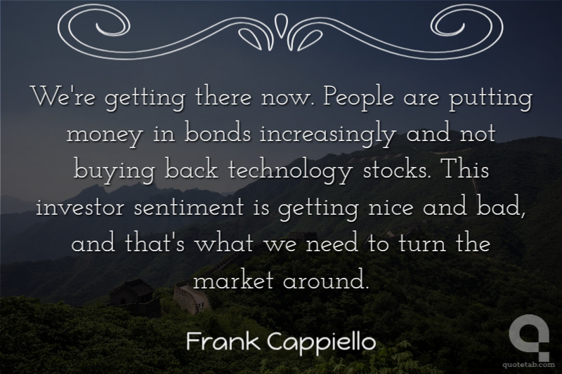 We're getting there now. People are putting money in bonds increasingly and not buying back technology stocks. This investor sentiment is getting nice and bad, and that's what we need to turn the market around. Frank Cappiello