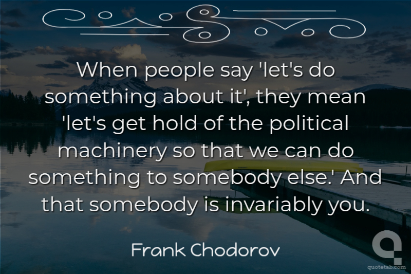 When people say 'let's do something about it', they mean 'let's get hold of the political machinery so that we can do something to somebody else.' And that somebody is invariably you. Frank Chodorov