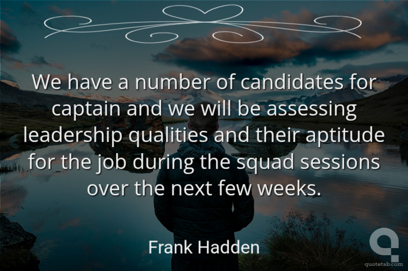 We have a number of candidates for captain and we will be assessing leadership qualities and their aptitude for the job during the squad sessions over the next few weeks. Frank Hadden