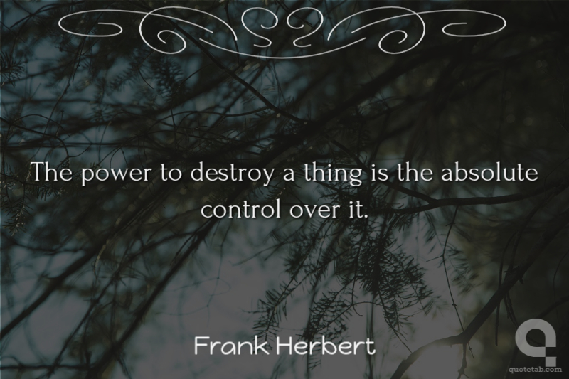 The power to destroy a thing is the absolute control over it. Frank Herbert