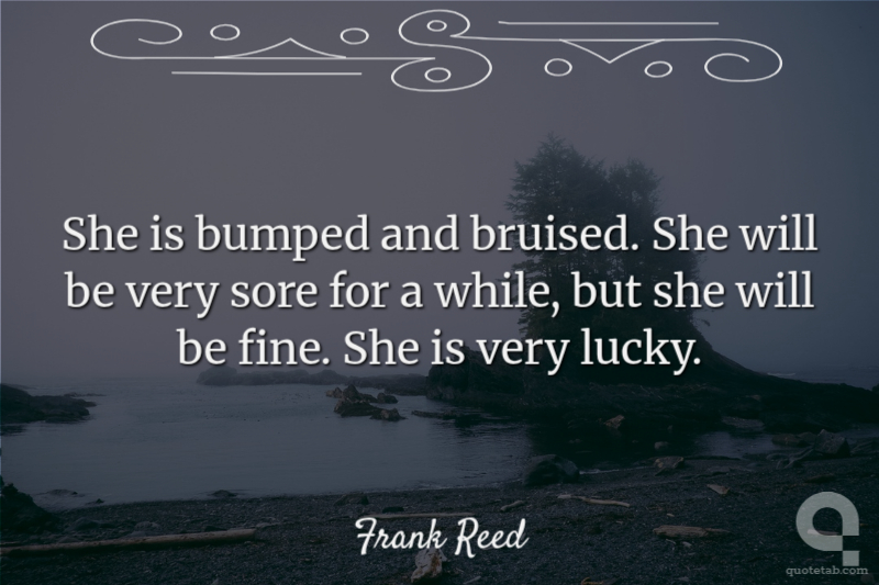 She is bumped and bruised. She will be very sore for a while, but she will be fine. She is very lucky. Frank Reed