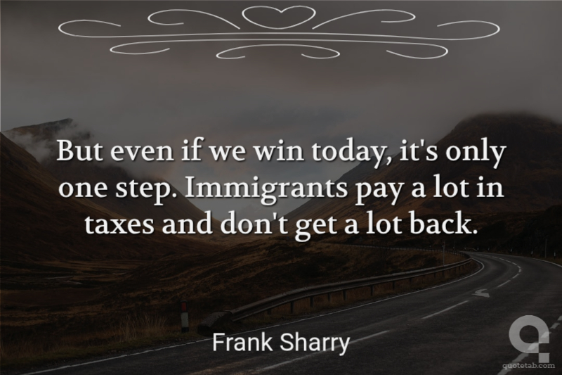 But even if we win today, it's only one step. Immigrants pay a lot in taxes and don't get a lot back. Frank Sharry