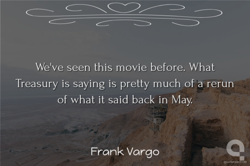 We've seen this movie before. What Treasury is saying is pretty much of a rerun of what it said back in May. Frank Vargo