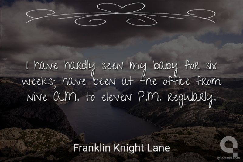 I have hardly seen my baby for six weeks; have been at the office from nine A.M. to eleven P.M. regularly. Franklin Knight Lane
