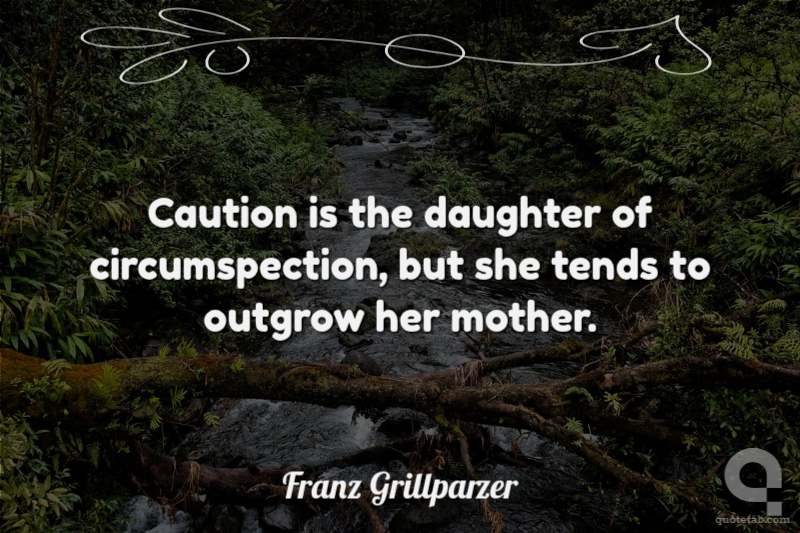 Caution is the daughter of circumspection, but she tends to outgrow her mother. Franz Grillparzer