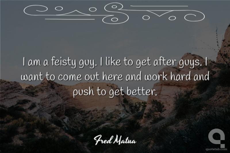 I am a feisty guy. I like to get after guys. I want to come out here and work hard and push to get better. Fred Matua