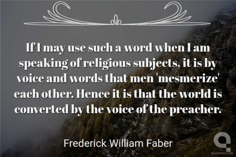 If I may use such a word when I am speaking of religious subjects, it is by voice and words that men 'mesmerize' each other. Hence it is that the world is converted by the voice of the preacher. Frederick William Faber