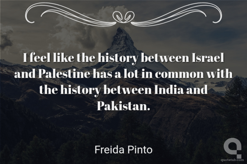 I feel like the history between Israel and Palestine has a lot in common with the history between India and Pakistan. Freida Pinto
