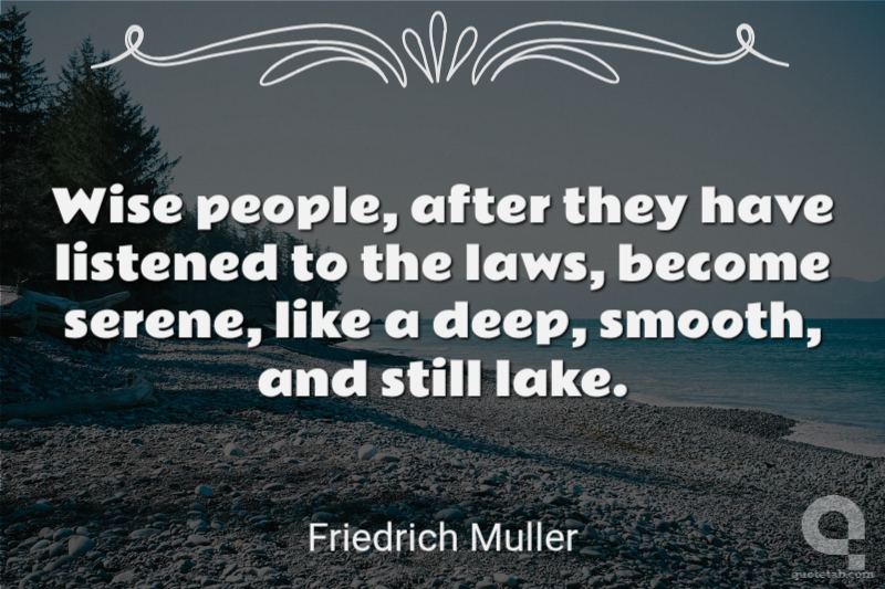 Wise people, after they have listened to the laws, become serene, like a deep, smooth, and still lake. Friedrich Muller